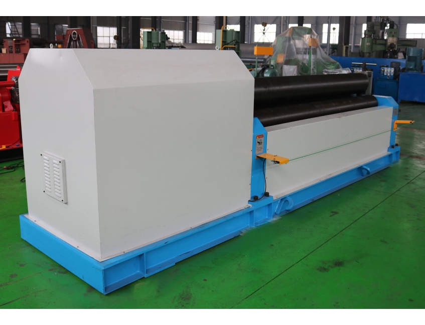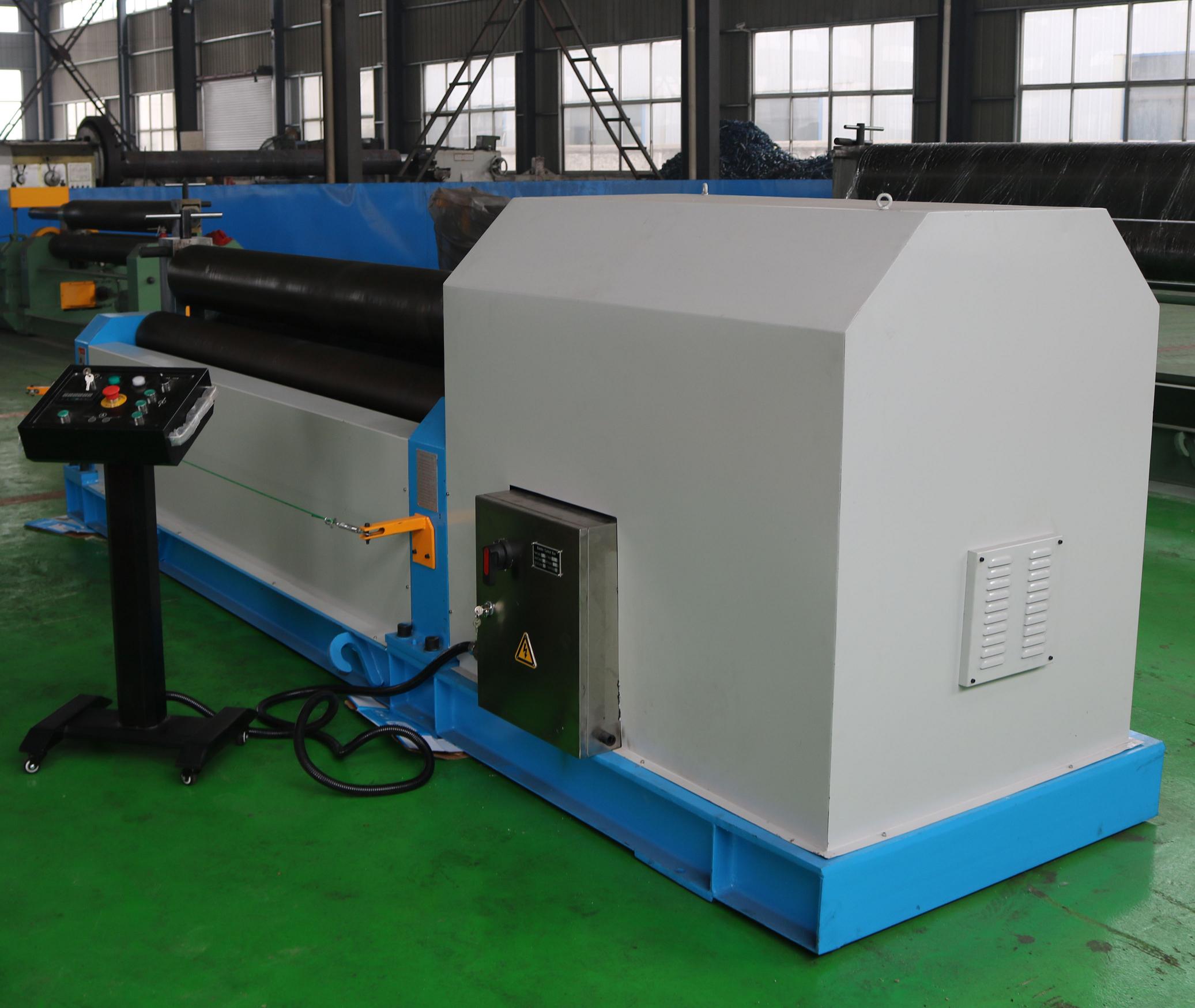 W11對稱彎板機是全機械式三彎板機。 三個滾筒全部固定,像金字塔一樣放置。